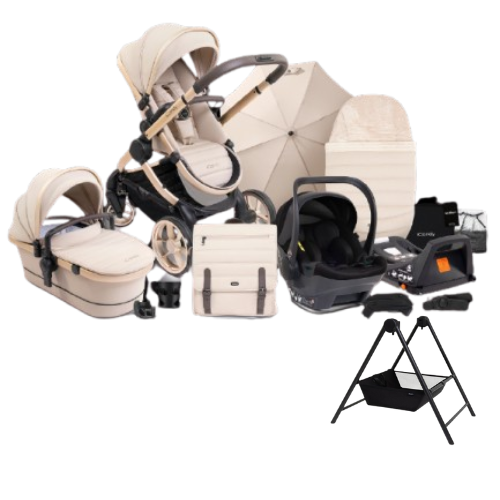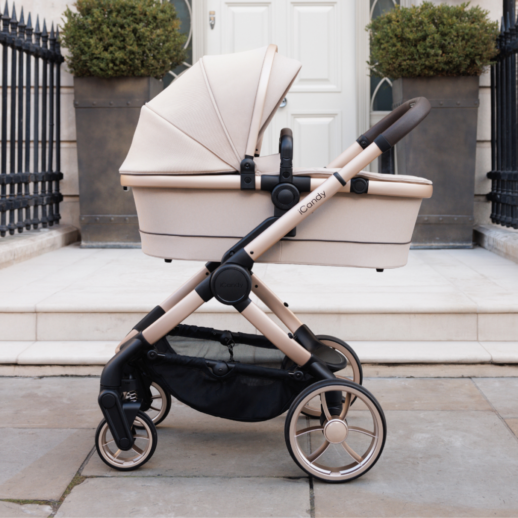 iCandy Peach 7 Complete Pushchair with Black Cocoon i-Size Car Seat and Base + Free Mi-Stand for Carrycot – Biscotti