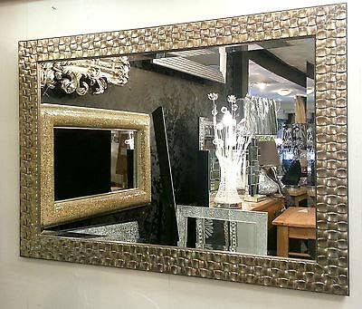 John Lewis Wall Mirror Rectangular Wooden Mosaic Frame Champagne / Antique Silver 106x76cm (42×30 inches)