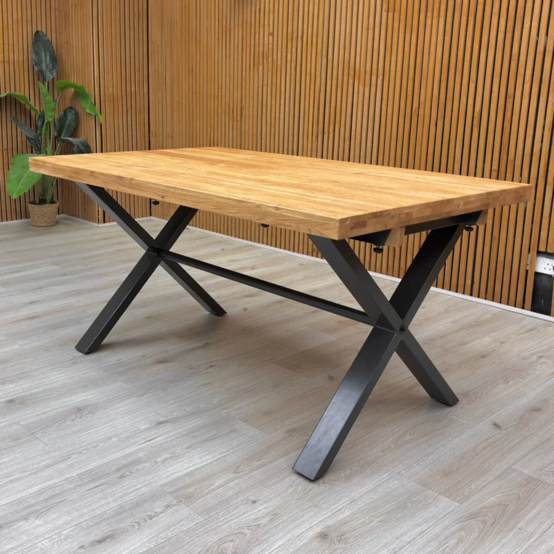 Furniture Village ‘Earth’ Solid Oak 150cm Fixed Dining Table Metal Legs