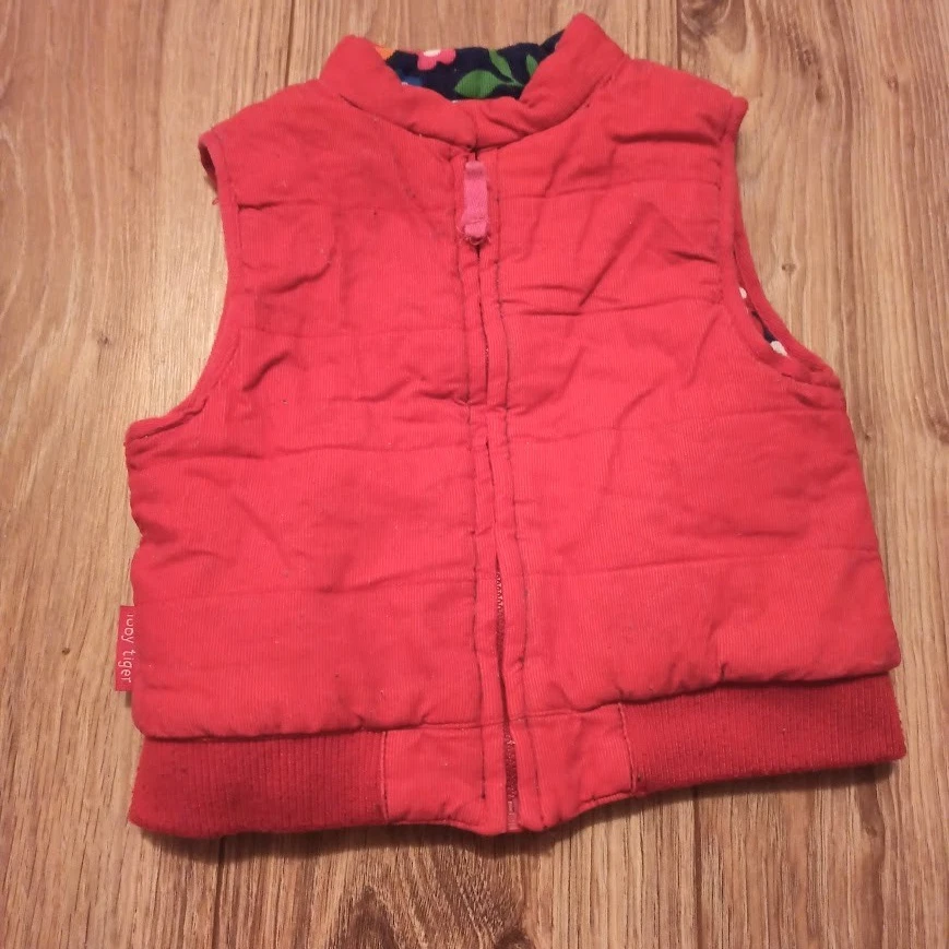 Toby Tiger Reversible Gilet/Bodywarmer Size 3–4 Years Floral & Red Cord Organic