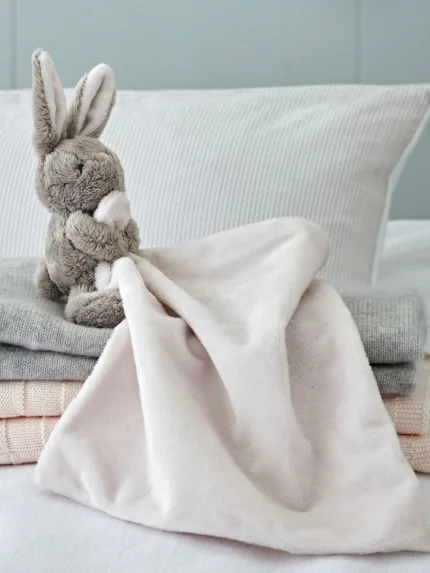 Perfect accessory on the go. Made with fibres. Practical, portable size. Great gift for little ones. Whether she’s hopping around or soothing little ones, our Bonnie bunny comforter is a great addition to their collection. She’s the perfect size for little ones to hold and easy to pop into your bag on days out.