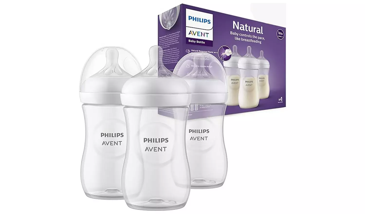 The Philips Avent Natural Response nipple only releases milk when the baby actively drinks. Babies can drink, swallow, and breathe using their natural rhythm, like on the breast. This bottle has a unique nipple opening which only releases milk when the baby actively drinks – so when they pause to swallow and breathe, the milk pauses too.